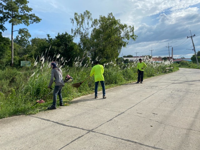 ดำเนินการปรับปรุงภูมิทัศน์ ตัดต้นไม้ บ้านจานเมืองใหม่ ตัดหญ้าหมู่ที่ 4