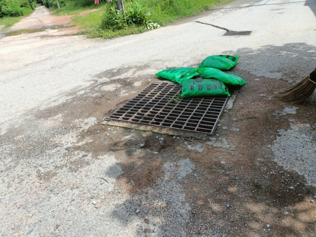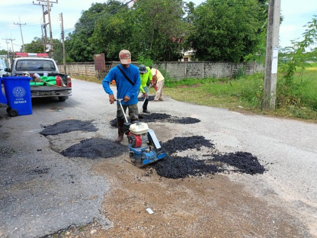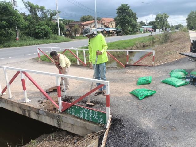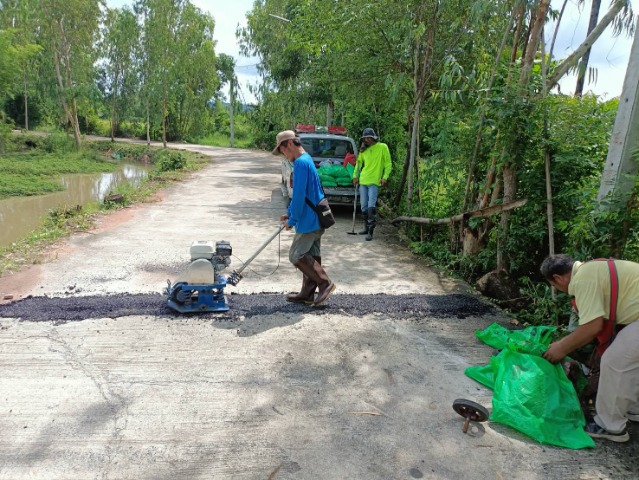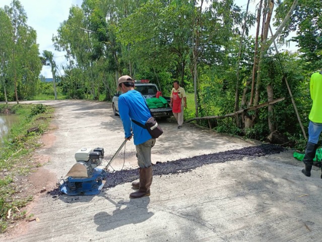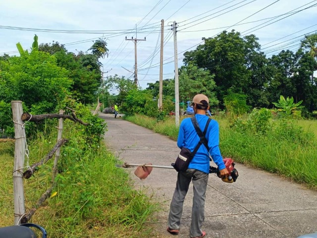 ดำเนินการปรับภูมิทัศน์ ตัดหญ้า หมู่ที่ 8 งานปรับปรุงพื้นผิวถนน หมู่ที่ 2