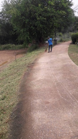 ดำเนินการปรับภูมิทัศน์ ตัดหญ้าข้างทางบริเวณเลียบคลองวันหนองครก หมู่ที่ 5 และหมู่ที่ 6