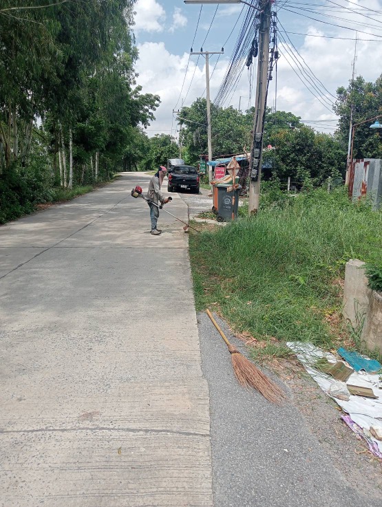 ปรับภูมิทัศน์ ทำความสะอาด ตัดหญ้าที่ยื่นล้ำเข้ามาบริเวณถนน