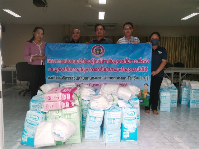 กองสวัสดิการสังคม ได้รับการสนับสนุนงบประมาณจากกองทุนหลักประกันสุขภาพองค์การบริหารส่วนตำบลหนองนาก เพื่อดำเนิน โครงการสนับสนุนผ้าอ้อมผู้ใหญ่สำหรับบุคคลที่มีภาวะปัญหาการกลั้นปัสสาวะหรืออุจจาระไม่ได้ ให้กับบุคคลที่มีภาวะปัญหาการกลั้นปัสสาวะหรืออุจจาระไม่ได้ ตามผลการประเมินหรือข้อบ่งชี้ทางการแพทย์ นายวสันต์ ดนมินทร์ นายกอบต.หนองนาก นายคณากร จันทรอุไร รองนายกอบต.หนองนาก พร้อมทั้ง สมาชิกสภาองค์การบริหารส่วนตำบลหนองนาก ทั้ง 9 หมู่ ร่วมกันมอบผ้าอ้อมให้กับบุคคลที่มีรายชื่อตามที่แพทย์ได้ประเมิน ดำเนินการมอบ ระหว่างเดือนมีนาคม - มิถุนายน พ.ศ 2566