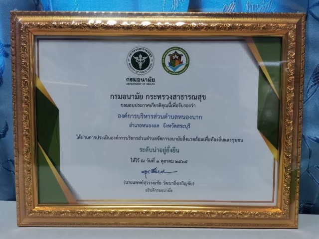 องค์การบริหารส่วนตำบลหนองนากได้ผ่านการประเมินองค์การบริหารส่วนตำบล จัดการอนามัยสิ่งแวดล้อมเพื่อท้องถิ่น และชุมชน ระดับน่าอยู่ยั่งยืน
