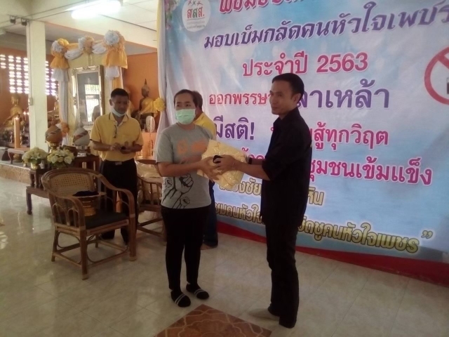 พิธีมอบเกียรติบัตร มอบเข็มกลัดคนหัวใจเพชร ออกพรรษา ลาเหล้า ชุมชนเข้มแข็ง
