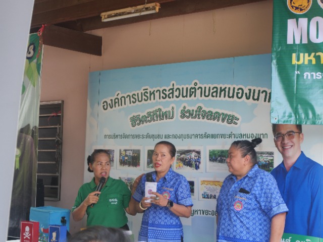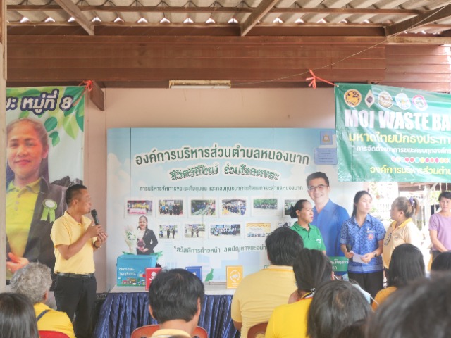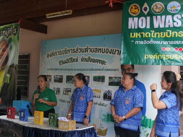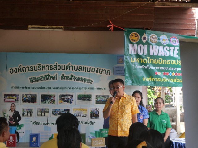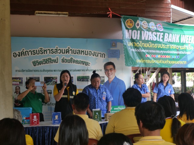 วันที่ 25 มีนาคม 2567 MOI WASTE BANK WEEK (1 องค์กรปกครองส่วนท้องถิ่น 1 ธนาคารขยะ) โดย องค์การบริหารส่วนตำบลหนองนาก จัดงาน MOI Waste Bank Week มหาดไทยปักธงประกาศความสำเร็จ ๑ องค์กรปกครองส่วนท้องถิ่น ๑ ธนาคารขยะ ณ บ้านโคกหัวนา หมู่ที่ 8 ตำบลหนองนาก อำเภอหนองแค จังหวัดสระบุรี ได้รับเกียรติจาก นายวสันต์ ดนมินทร์ นายก อบต.หนองนาก เป็นประธานประกาศความสำเร็จในการจัดตั้งกองทุนธนาคารขยะฯในหัวข้อ MOI Waste Bank Week-มหาดไทยปักธงประกาศความสำเร็จ๑องค์กรปกครองส่วนท้องถิ่น๑ธนาคารขยะ และมอบนโยบายแนวทางการขับเคลื่อนการดำเนินงานกองทุนธนคารขยะในพื้นที่ระยะต่อไป