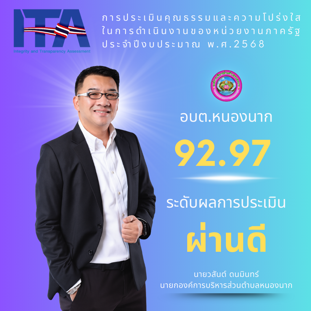 องค์การบริหารส่วนตำบลหนองนาก ได้คะแนน 92.97ระดับผลการประเมิน ผ่านดี ในการประเมินคุณธรรมและความโปร่งใสในการดำเนินงานของหน่วยงานภาครัฐ ประจำปี พ.ศ. 2568